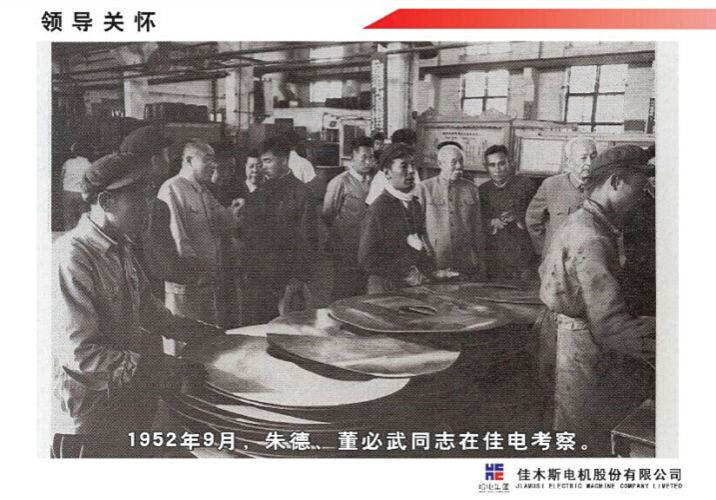 Zhu De (third from left) and Dong Biwu (fourth from right) inspected Jiamusi Paper Mill (1964.7). In September 1952, after Zhu De inspected the motor factory, wood comprehensive processing plant, power plant, oil depot and other units in Jiamusi, he told the leading comrades of Jiamusi that he should learn from industry and build Jiamusi into an industrial city. Motor factory is the country's precious wealth, factory leaders to manage the home. In July 1964, Zhu De inspected the products produced by the timber comprehensive processing plant and said that the comprehensive utilization of timber should strive for more products and more foreign exchange.