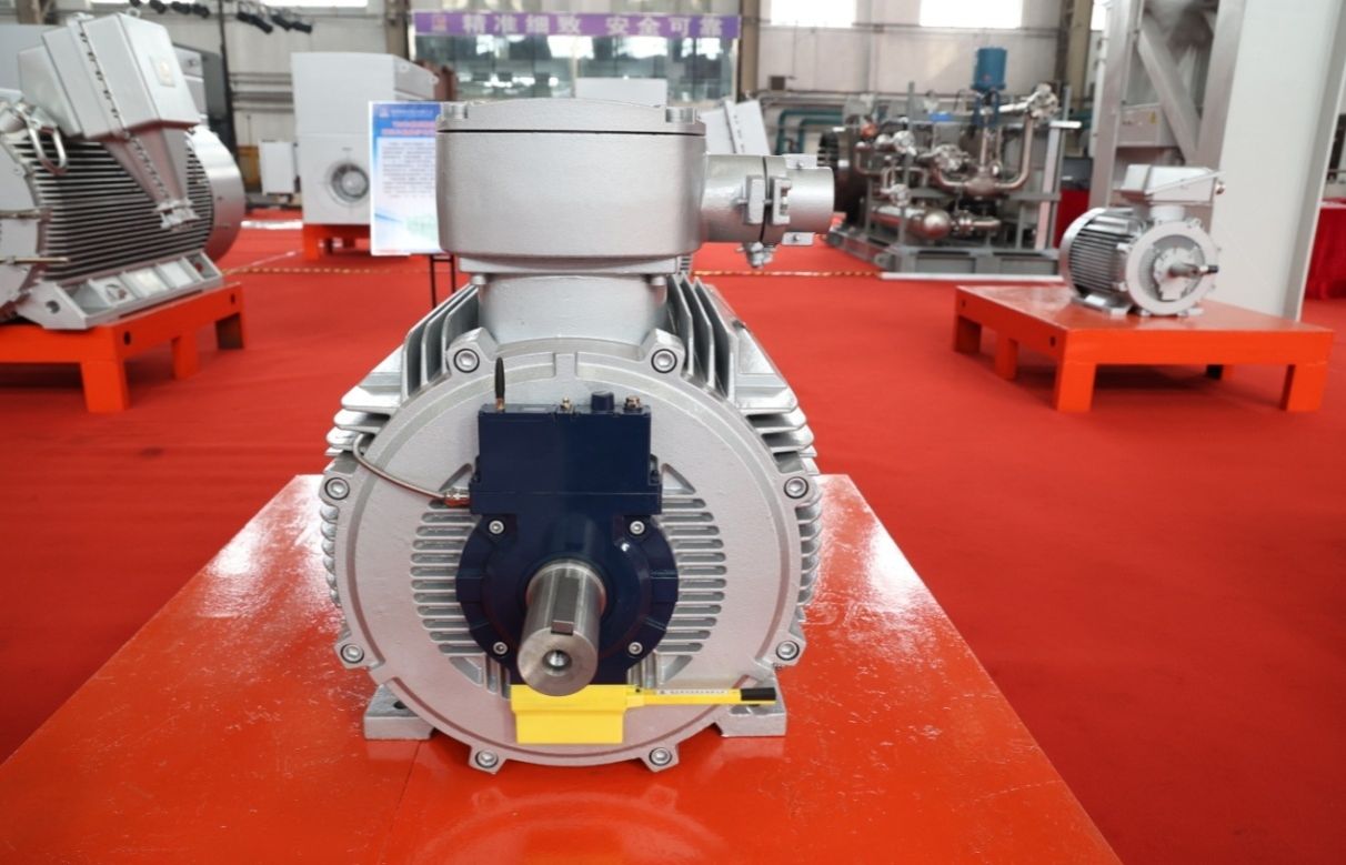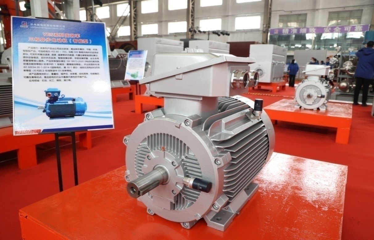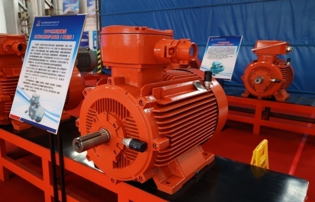 The TBYC series high-efficiency flameproof permanent magnet three-phase synchronous motor (intelligent) and TYC series permanent magnet three-phase synchronous motor (intelligent) products on display at this conference replace the magnetic energy generated by the electric excitation of traditional motors by relying on the magnetic energy provided by permanent magnets, and have the characteristics of low motor loss and high operation reliability. When the load is low, the product can still maintain high operating efficiency and power factor, which solves the problem of large energy consumption of mechanical equipment at low load. Some of these specifications can be equipped with intelligent monitoring terminal products, which can collect acceleration, speed, temperature and other state data in real time, and have built-in edge intelligent sensing algorithms, which can provide core services such as equipment overview, real-time state monitoring, intelligent fault diagnosis, early fault warning, and full life cycle management. At the same time, the product efficiency index can meet the requirements of level 1 energy efficiency. In the whole life cycle of the motor, it can save considerable electricity charges and various facilities supporting costs for users. It is the recommend product of "energy efficiency star" of the Ministry of industry and information technology, which can be applied to petrochemical, power system, textile, industrial and mining enterprises, as well as machinery such as dragging fans and pumps.