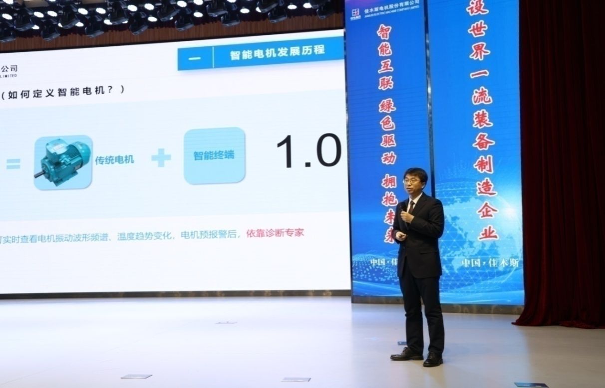 Pan Bo, deputy general manager of Jiadian Co., Ltd., introduced intelligent motor products in detail.