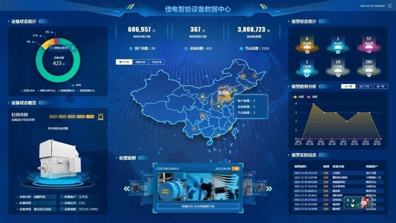 The report of the 20th National Congress of the Communist Party of China proposed that we should adhere to the focus of economic development on the real economy, promote new industrialization, and accelerate the construction of a manufacturing power, a quality power, a space power, a transportation power, a network power, and a digital China. Jiadian shares rely on the advantages of motor research and development, the use of 5G, artificial intelligence, big data and other technologies, focus on the development of intelligent motors, the establishment of a special research and development team. Five years of sharpening a sword, focusing on the underlying technology of intelligent motors, has achieved gratifying results, and launched the "equipment life cycle management system, soft and hard computing integrated solution" platform, which provides data support for equipment operation and maintenance management decision-making, realizes the predictive maintenance of industrial equipment, and improves the continuity, reliability and safety of the production process.