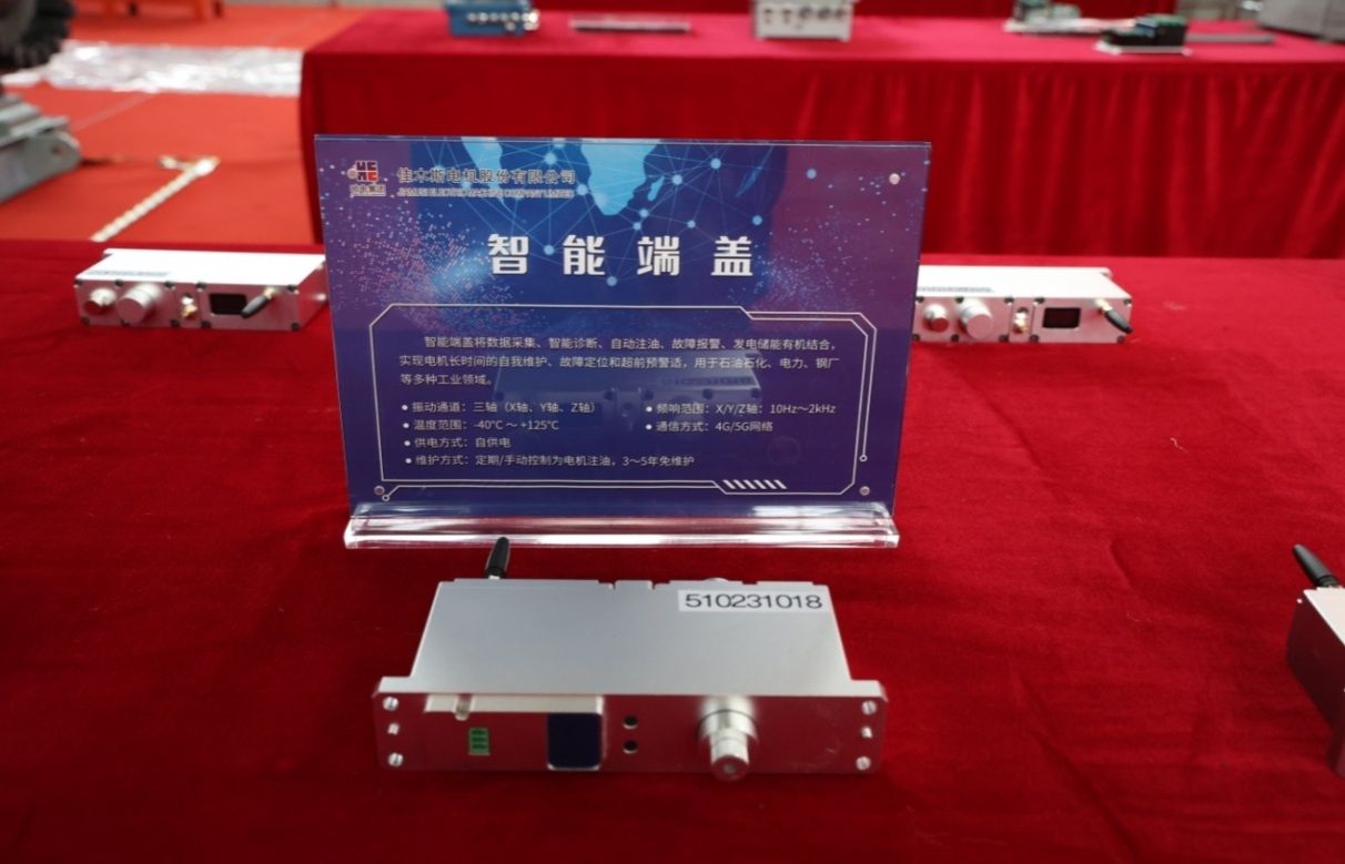 This conference is on display.Intelligent end coverThe end cover has a built-in generator to supply power to the edge intelligent terminal without external power supply and solve the endurance problem. The edge intelligent terminal is embedded in the installation end cover to collect vibration and temperature data in real time. The data collection is more accurate and realizes early warning and intelligent diagnosis for various faults. The end cover is specially designed for various high and low voltage motors and is suitable for various industrial scenarios.