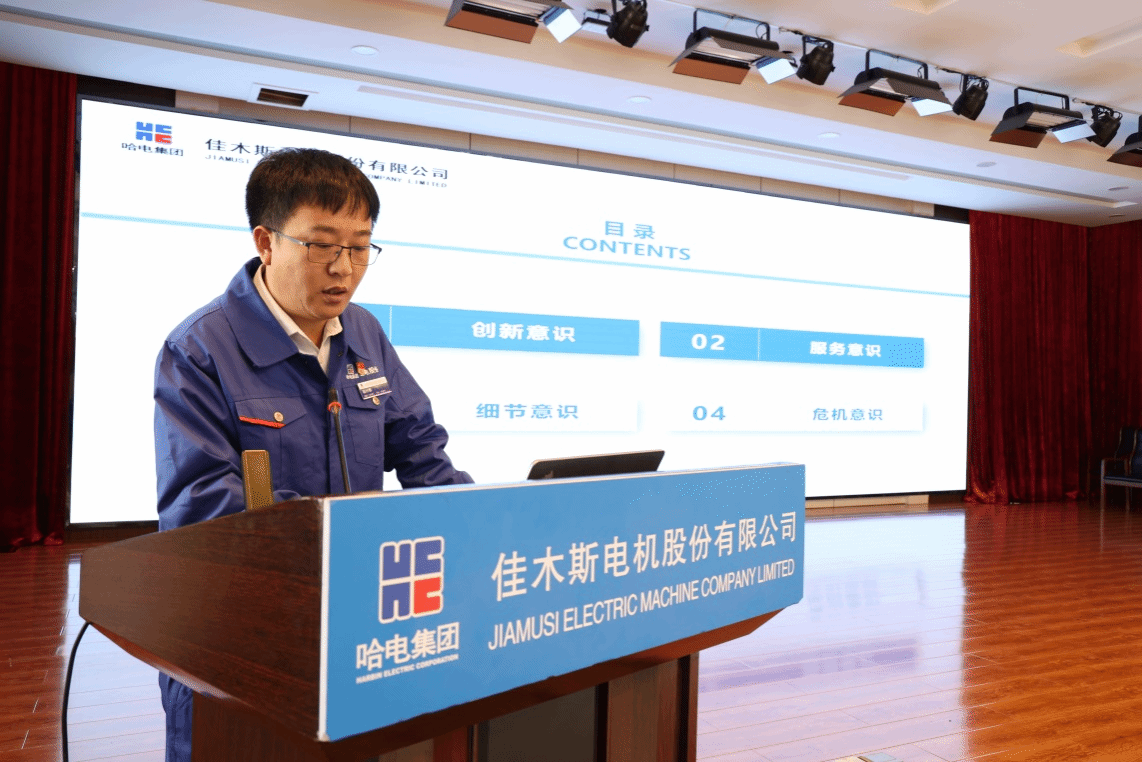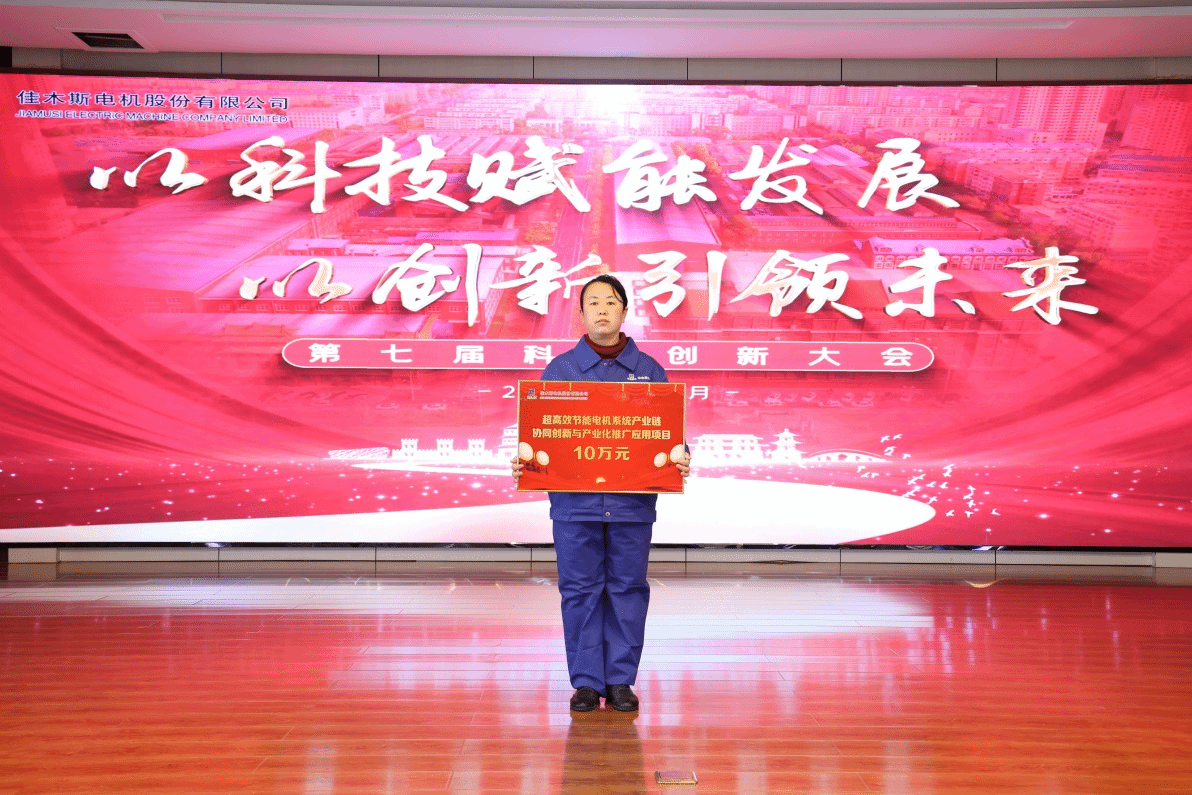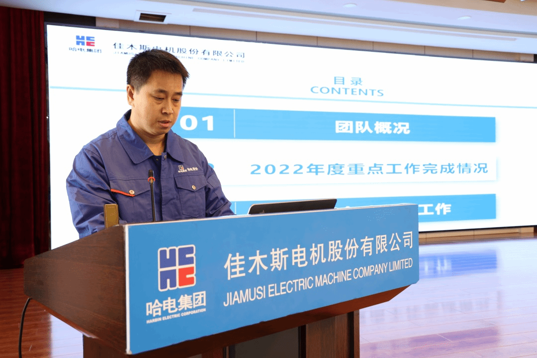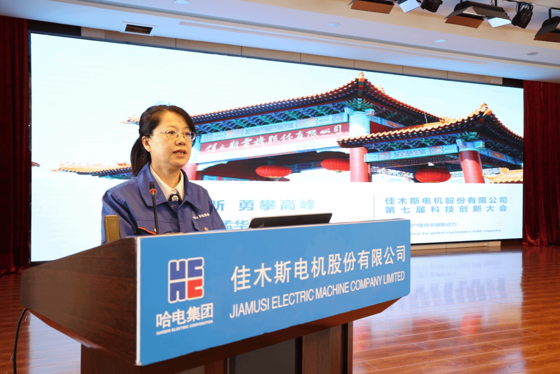 On March 11, Harbin Electric Group Jiamusi Electric Co., Ltd. (hereinafter referred to as "Jiadian Co., Ltd.") solemnly held the 7th Science and Technology Innovation Conference to commend and reward the collectives and individuals who have made outstanding contributions to the scientific and technological work of Jiadian Co., Ltd. in 2022. The award-winning representatives made a presentation and experience sharing on major scientific and technological projects. Jiang Qinghai, deputy secretary of the party committee, vice chairman and general manager of Jiadian Co., Ltd. attended the meeting and delivered a speech. Pan Bo, deputy general manager of Jiadian, made an annual scientific and technological work report. Liu Hancheng, deputy secretary of the party committee and chairman of the trade union of Jiadian Co., Ltd., presided over the meeting. The leaders of Jiadian, the middle-level leaders of relevant units and all scientific and technological personnel of the technical front attended the meeting.