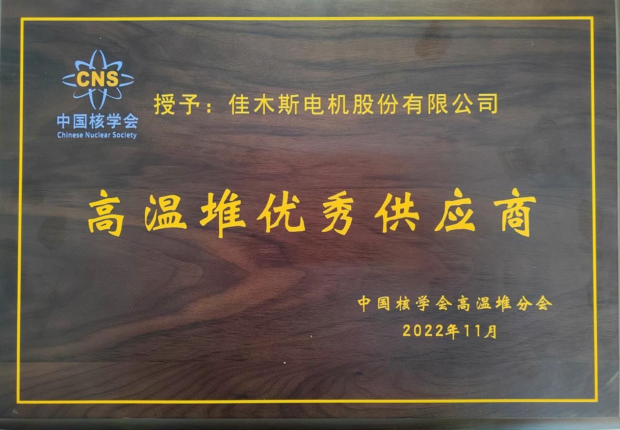 China Nuclear Society High Temperature Reactor Branch "High Temperature Reactor Excellent Supplier" honorary title.