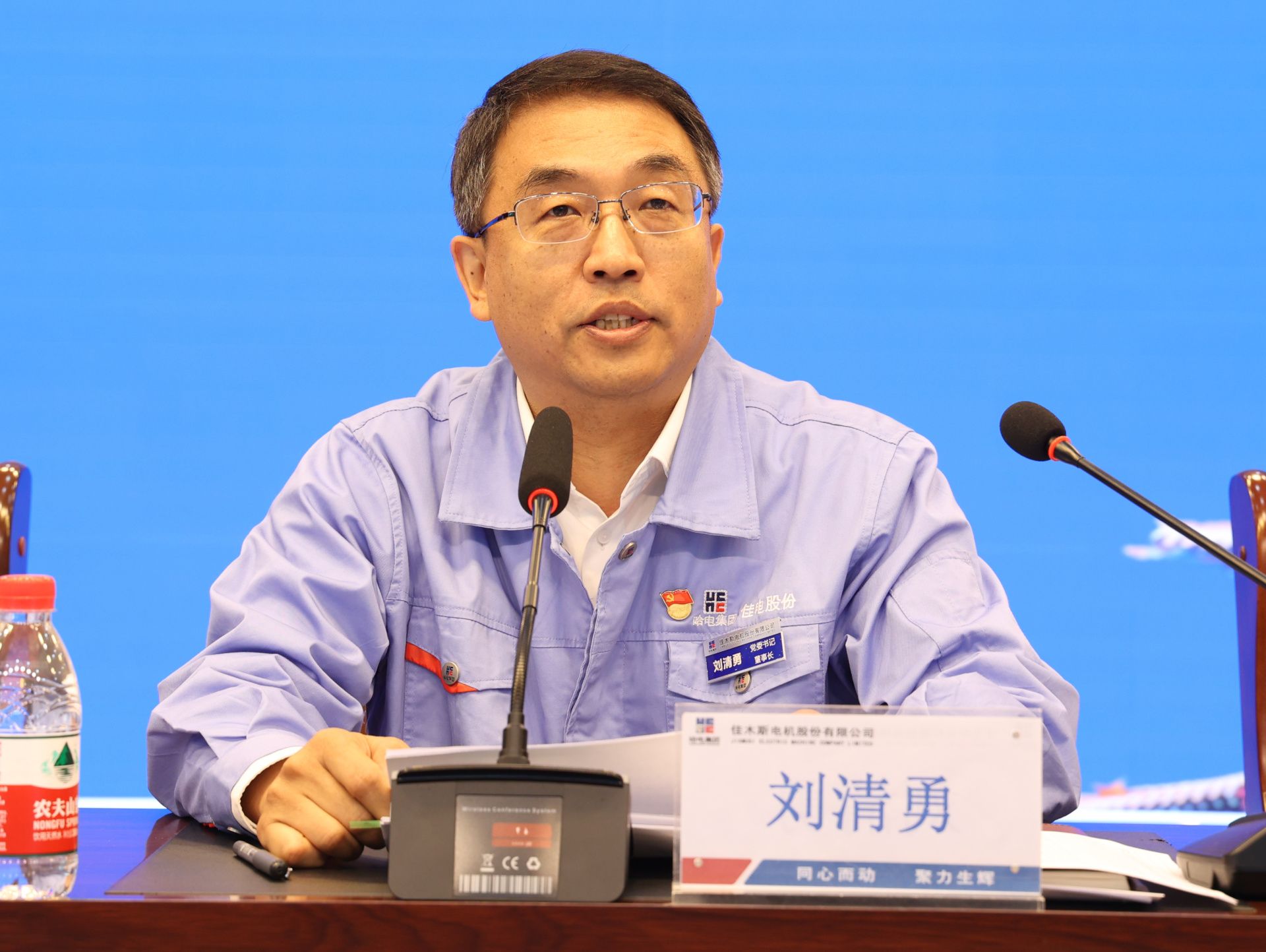 Liu Qingyong, Secretary of the Party Committee and Chairman of Harbin Electric Group Jiadian Co., Ltd., made a speech.