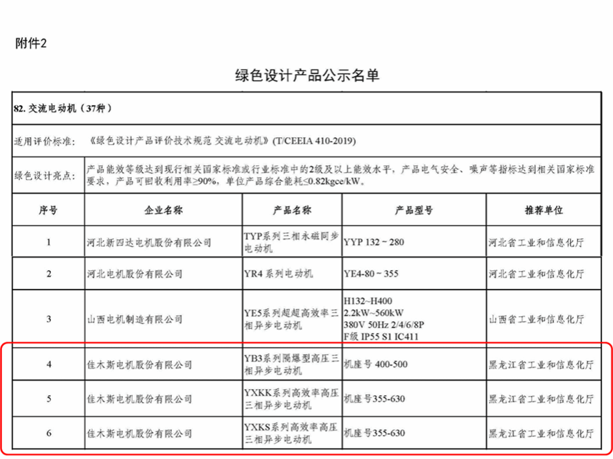 Recently, Harbin Electric Group Jiadian shares were awarded.National "green product design demonstration enterprise" title, IE5 series motor enterprise standard won the 2021 national enterprise standard "leader" title, 3 seriesHigh voltage motor productsWon the national "green design products" title. The three awards are another good achievement after Jiadian Co., Ltd. won the titles of "leader" of national enterprise standard, national "green design product" and national "green factory" in 2020. It is of positive significance for enterprises to aim at the goal of "double carbon", practice the concept of "green and low carbon", and continuously promote the transformation and development of industrial green and low-carbon cycle.
