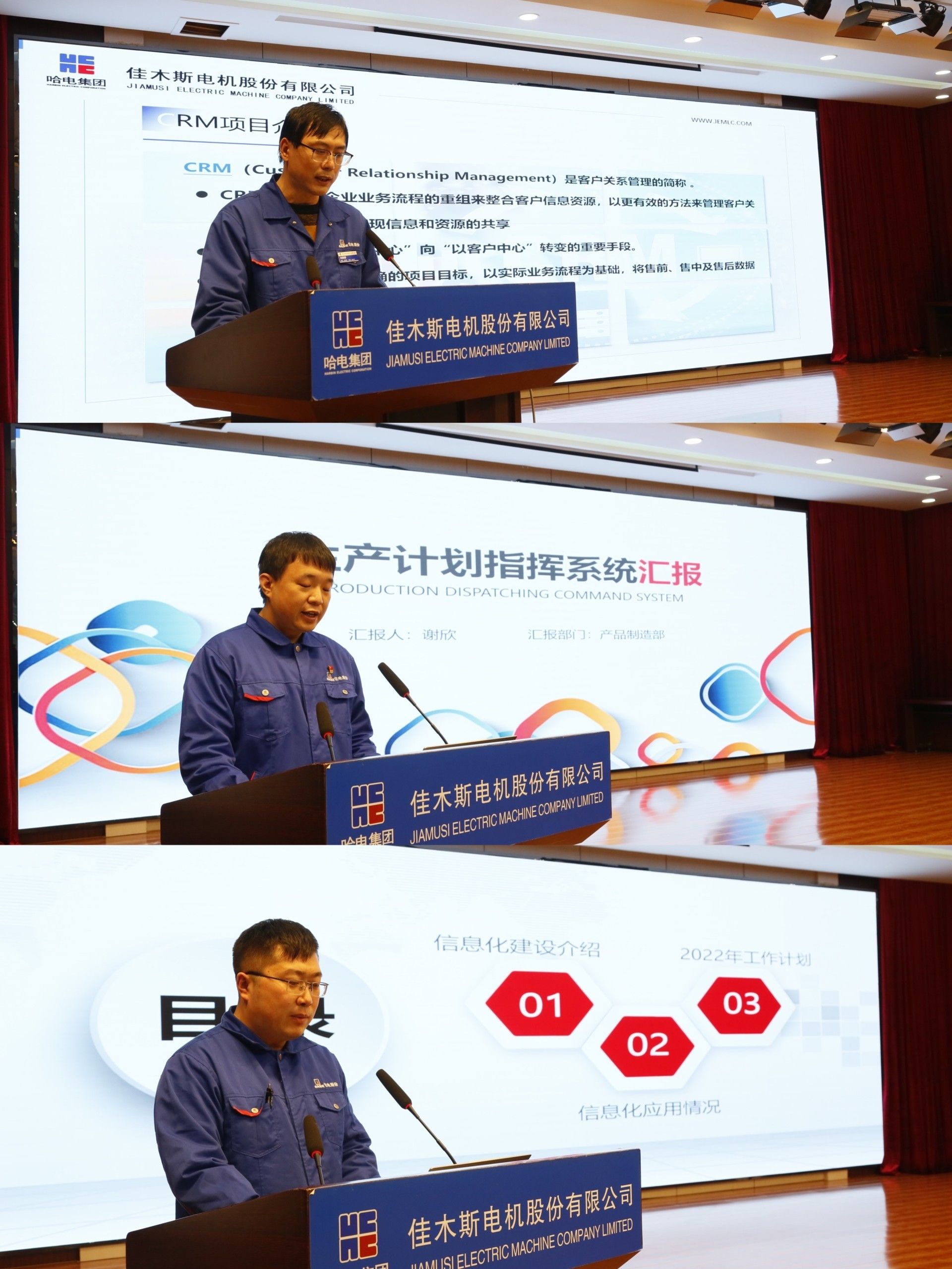CompanyShao Xicai, Ministry of Internal Trade, Xie Xin, Product Manufacturing Department, and Xu Lei, Procurement CenterseparatelyCRMsystem, production planning command system, procurement center supply chain and other three aspects of the implementation of information construction in detail. At present, the development and application of information system has become an important management means of the company. Through information construction, it has improved work efficiency, improved work accuracy, reduced labor load, brought unexpected derivative effects, and promoted the high-quality development of company management.