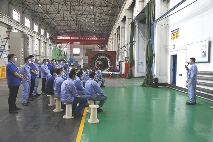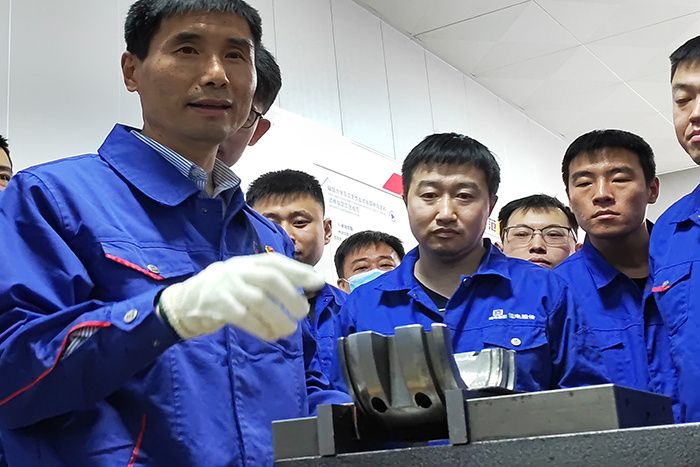 "National Model Worker", "Longjiang Craftsman" of Heilongjiang Province, Chief Technician of Jiadian Co., Ltd. and Assembler of Large Workshop Belin taught "Theoretical Knowledge of Scraping of Sliding Bearings", which transformed various types of bearing shells into clear and clear structural drawings, and explained and refined the technical points and related influences of bearing shell oil wedge control, oil film stiffness, rotation speed, scraping skills and clearance, tight force control, etc, dry goods full of on-site workers benefited greatly.