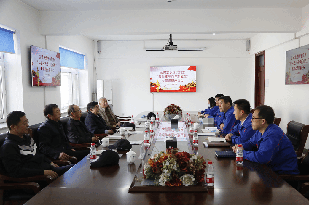 In order to implement the "Harbin Electric Group Party Committee on doing a good jobThe Notice on the Work of Retired Cadres in 2021 requires that on the morning of April 26, the Party Committee of the Company held a special research symposium on "I see the new achievements of the founding of the Party in the past century" to listen to the opinions of the old leaders and comrades on the great achievements made in the 100 anniversary of the founding of the Party, review the Party's struggle, talk freely about the Party's brilliant achievements and praise the Party's great miracles. Five retired veteran leaders and representatives of veteran comrades attended the research forum, and Liu Hancheng, deputy secretary of the party committee of the company, presided over the meeting.