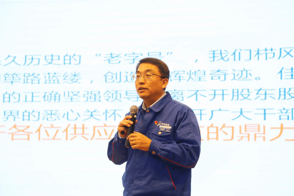 At the meeting, Jiang Qinghai, deputy secretary of the party committee and general manager, delivered a welcome speech on behalf of Jiadian and extended a warm welcome to the supplier representatives to the conference.