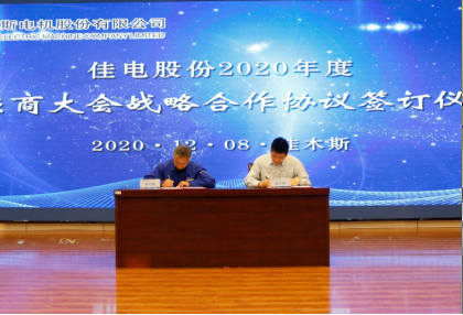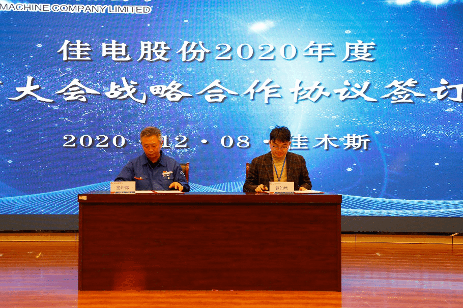 Jiang Qinghai signed a strategic cooperation agreement with representatives of three strategic suppliers, Hangzhou Huaguang, Liaoning Donggang and Shenke, on behalf of Jiadian.