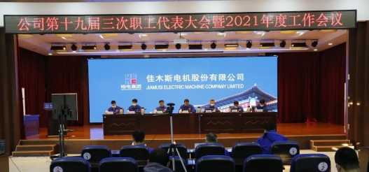 On January 19, Harbin Electric Group Jiamusi Electric Machinery Co., Ltd. (Jiamusi Electric Machinery Factory Co., Ltd.) held the 19th Third Workers' Congress and 2021 Work Conference to summarize the work in 2020, analyze the situation, arrange the overall work in 2021, and commend the advanced collectives and individuals in 2020.
