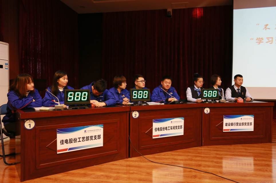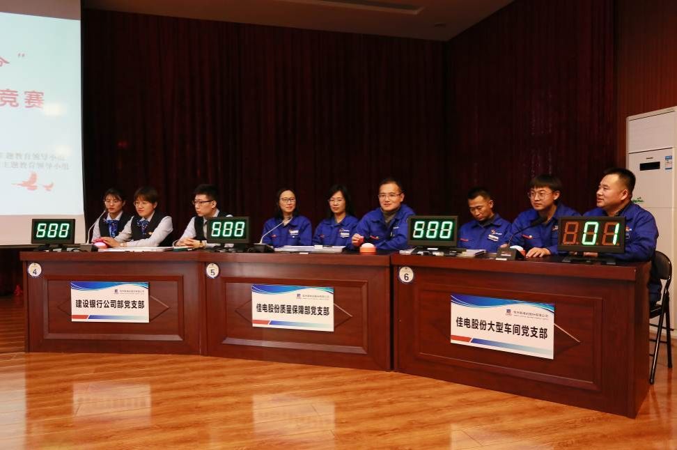 In order to further study Xi Jinping's new era of socialism with Chinese characteristics and the spirit of the fourth Plenary session of the 19th CPC Central Committee, deepen the broad masses of party members' understanding and understanding of the party's history, the party's basic theory, basic line and basic strategy, and consolidate and strengthen the achievements of the theme education of "never forget the original ideal and ambition and bear in mind the mission", on the afternoon of November 29, the Party Committee of Harbin Electric Group Jiamusi Electric Co., Ltd. (hereinafter referred to as "Jiadian Co., Ltd. Party Committee") and the Party Committee of Jiamusi Branch of China Construction Bank Co., Ltd. (hereinafter referred to as "Jiamusi Branch Party Committee of China Construction Bank") jointly held the "Do not forget your initiative mind, Remember Mission" theme education "Learning Power Cup" Party Building Knowledge Contest in the Jiadian Co., Ltd.