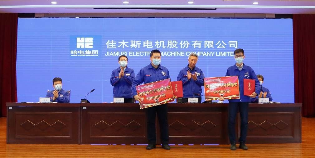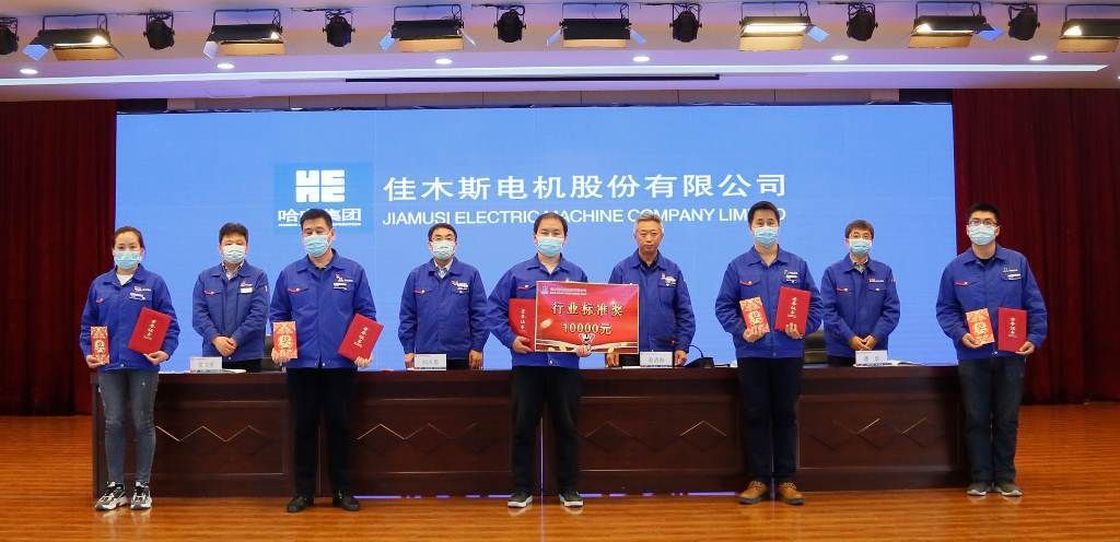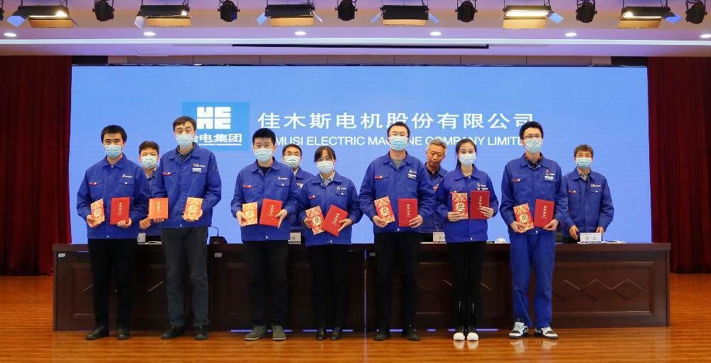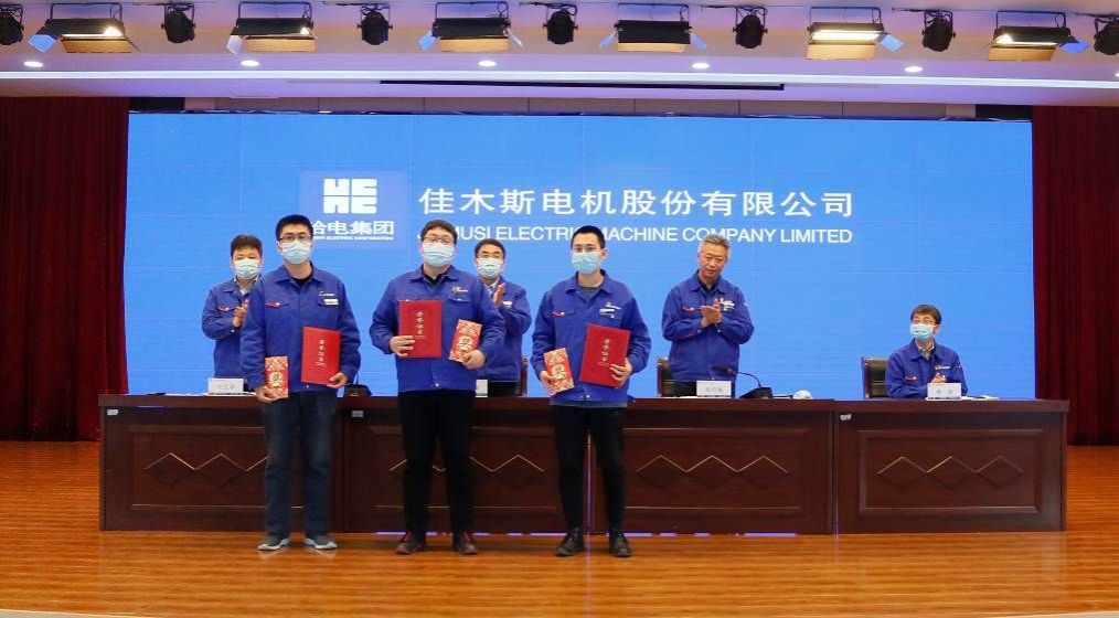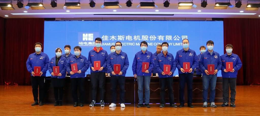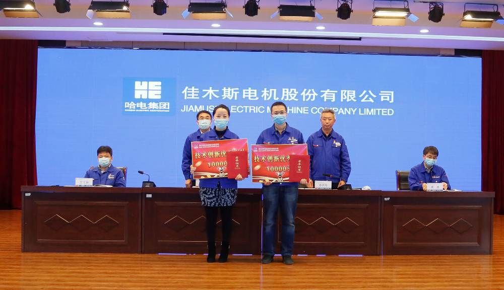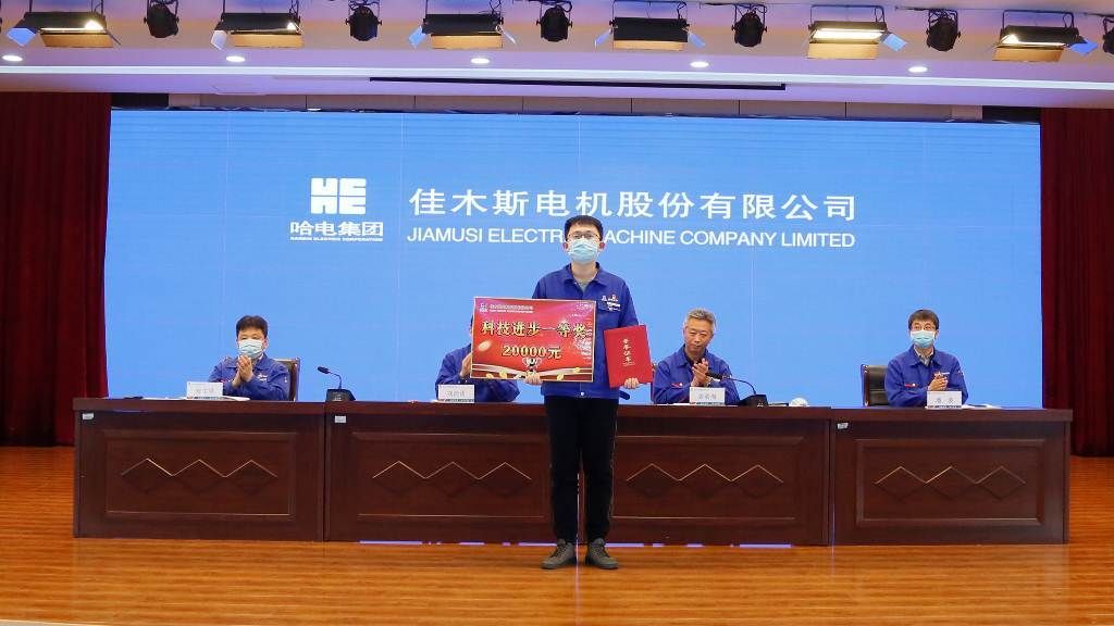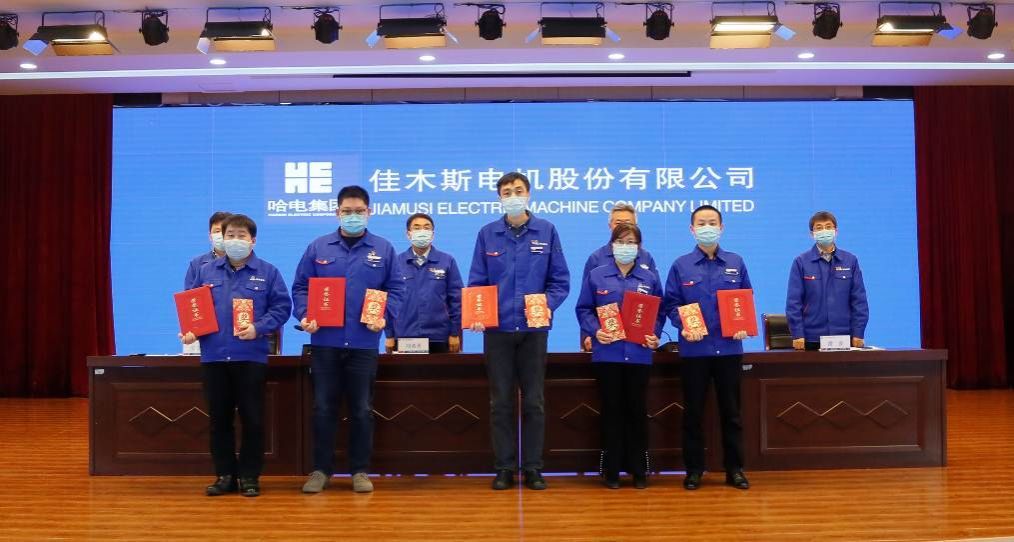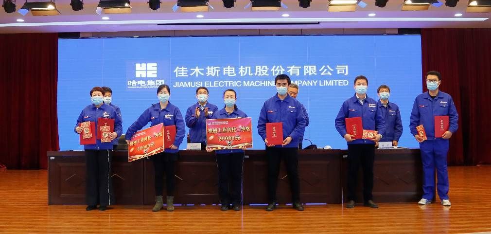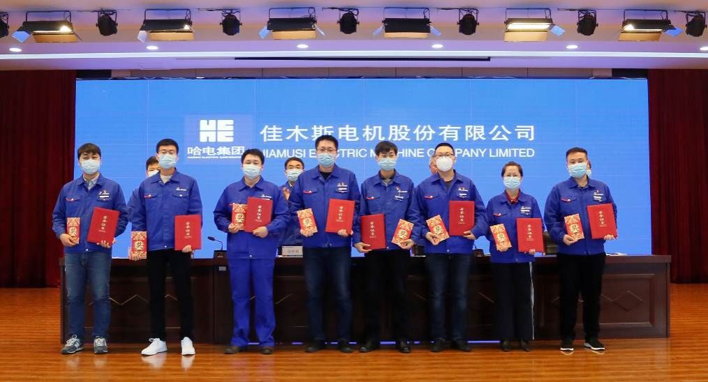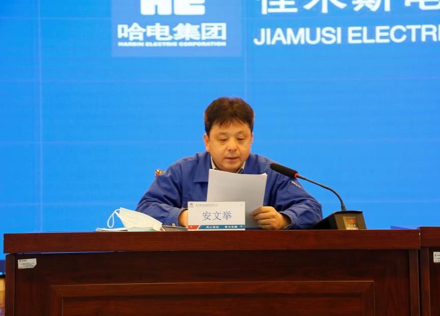 An Wenju, deputy general manager, read out the decision of Harbin Electric Group Jiamusi Electric Co., Ltd. on commendation and reward for scientific and technological work in 2020, commending the advanced collectives and individuals who have made outstanding contributions to the company's scientific and technological cause, and presenting awards to the award-winning representatives.