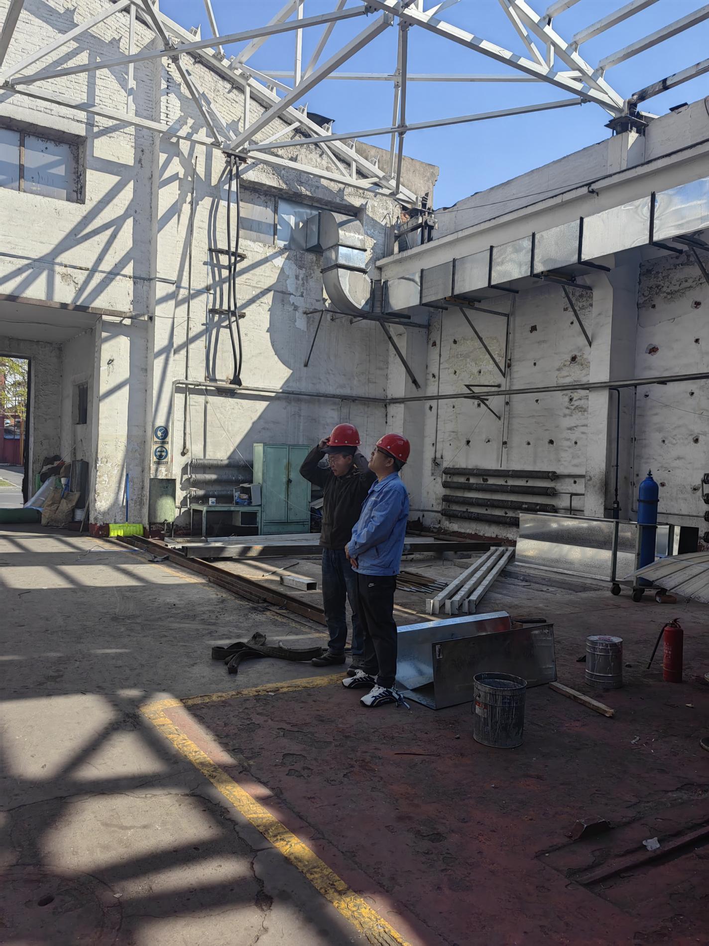 公司办公室针对“小型车间七栋屋面更换项目”,与施工单位深入探讨、优化施工,已完成全部22榀屋架安装,15跨屋面板、天沟安装,计划于5月5日前完成屋面封闭施工,为后续技改项目实施提供有力保障。