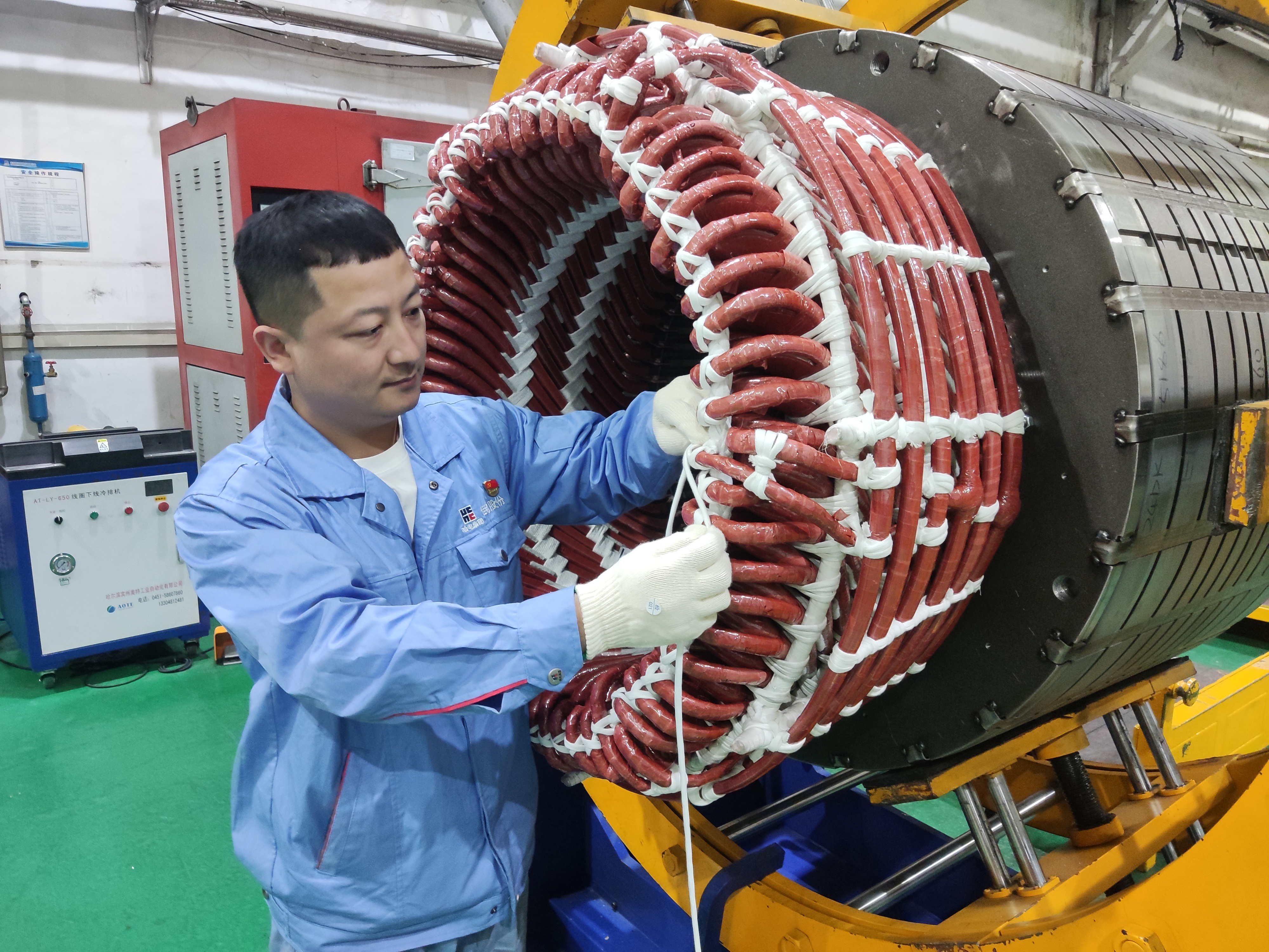 为顺利完成重点用户急要电机绕组的接线工作,车间接线工成名坤,充分发挥党员的先锋模范作用,主动放弃了休假时间,承担起线路焊接固定工作,一次性顺利通过了接线后的各项试验,保证了制造工期。