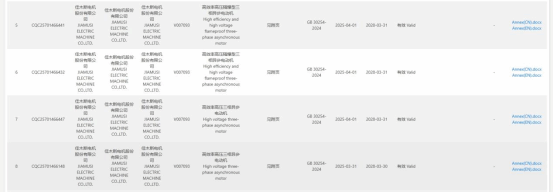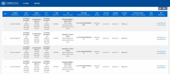 4月1日,中国质量认证中心(CQC)官方网站更新了中国节能认证证书内容,哈电集团佳木斯电机股份有限公司(以下简称“佳电股份”)率先通过新版国家标准GB 30254-2024《高压三相笼型异步电动机能效限定值及能效等级》高压电机系列新1级能效认证,成为了全国首家进行高压电机系列新1级能效产品取证的企业,进一步彰显了佳电股份积极践行国家“双碳”战略的责任担当,充分体现了企业在推动工业设备绿色发展方面的领军地位。在此过程中,中国质量认证中心(CQC)给予了大力支持并到公司见证了相关系列产品的认证过程。